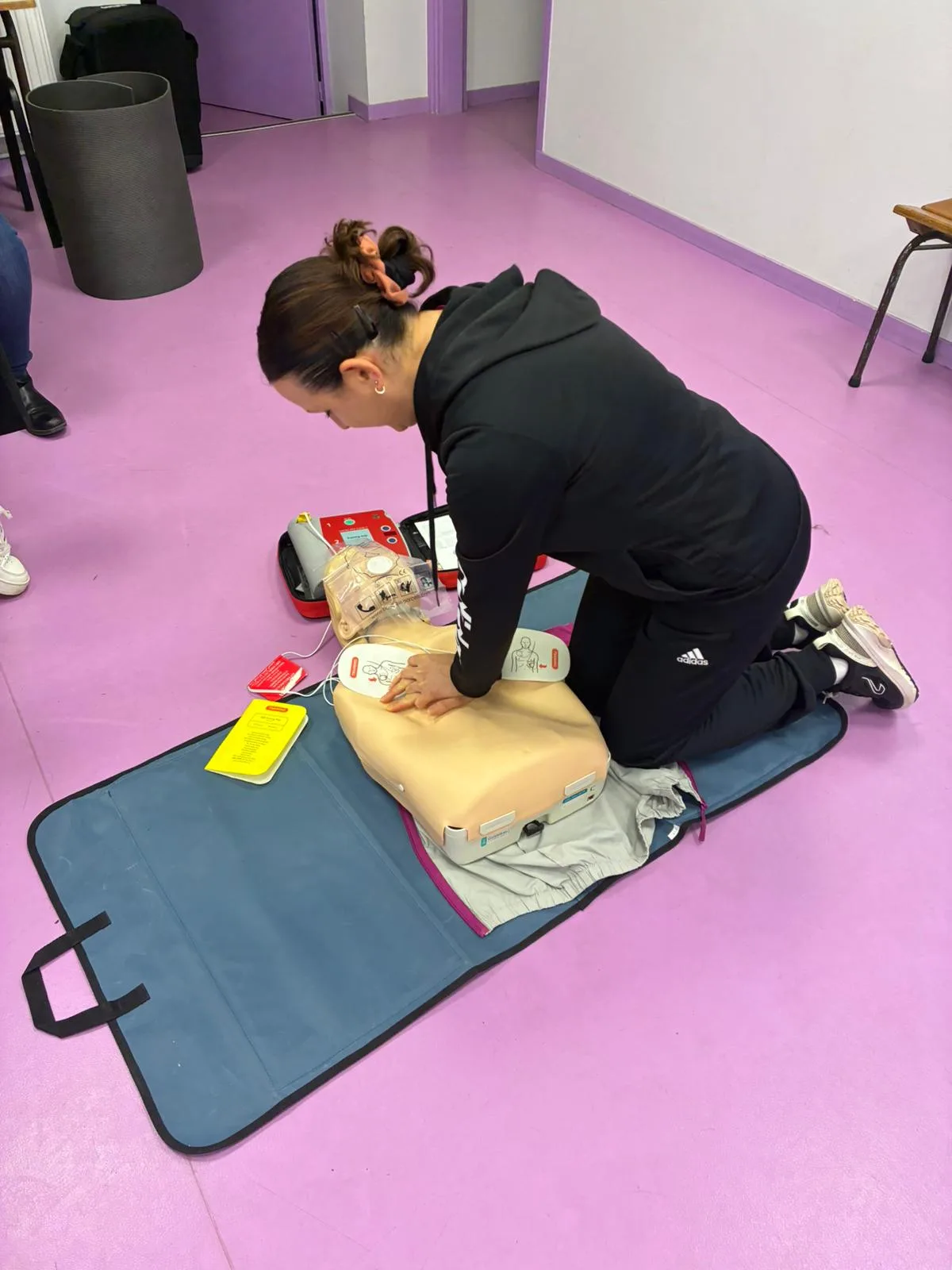 Pendant 7 heures, les 9 membres du personnel ont alterné théorie et mises en situation pratiques afin d’apprendre les bons réflexes face à une situation d’urgence.